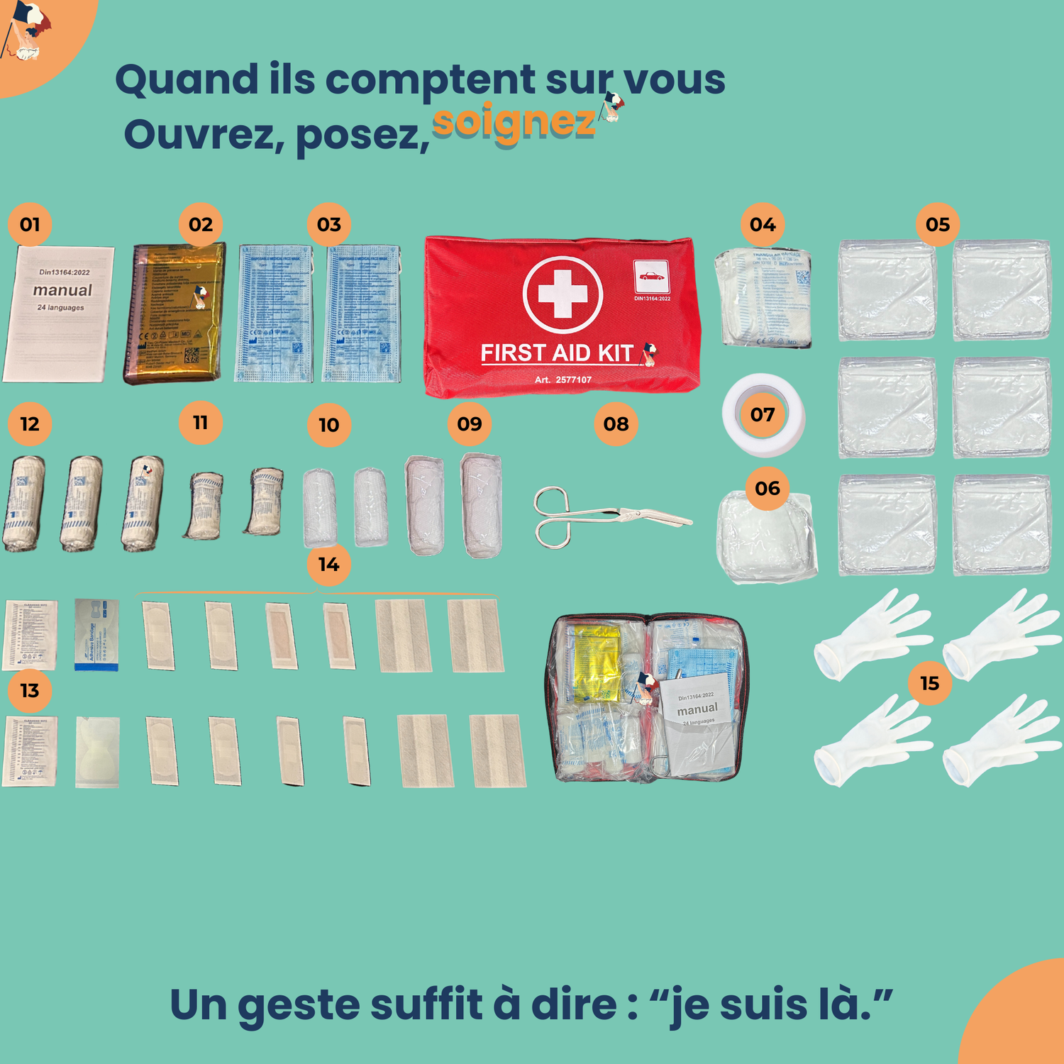 Trousse de premiers soins complète (41 pièces) : Avoir les gestes qui sauvent à portée de main pour les petites et grandes blessures.